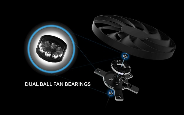 O carcasa, un radiator si un sistem de conducte termice atent proiectate permit celor doua ventilatoare Axial-tech sa profite de ventilatia laterala a carcasei, oferind o performanta termica care depaseste dimensiunea compacta.