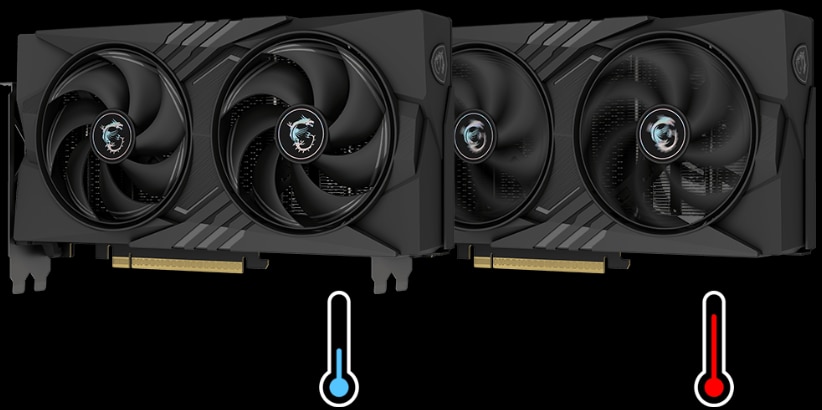 Experimentati o racire superioara si o performanta mai silentioasa cu designul actualizat TWIN FROZR 10 de la MSI, cu ventilatoare imbunatatite care optimizeaza disiparea caldurii pe intreaga placa grafica.