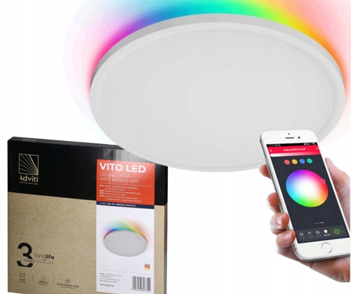 Plafoniera ADVITI Vito AD-PL-6515WLZM/CCT, LED, 36W, 3000K, 4000K, 6500K + RGB, aplicatie Tuya, IP20, IK05, plastic, alb