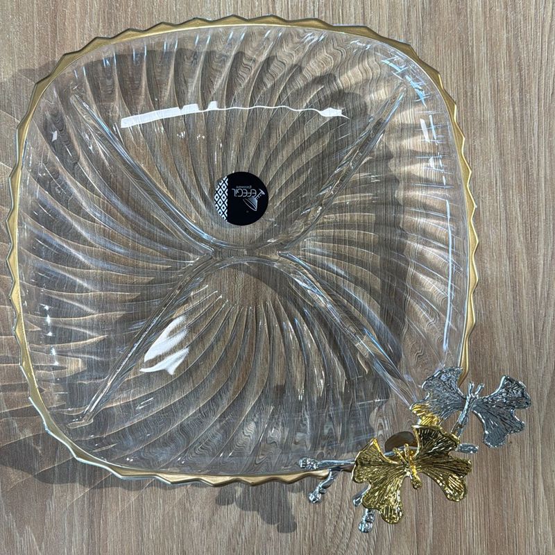 Platou compartimentat Efegil Luxury 25x25 cm transparent-auriu Platou compartimentat Efegil Luxury 25x25 cm transparent-auriu