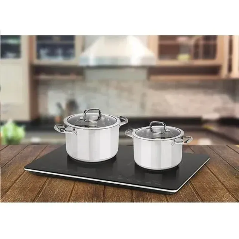 Principiul si avantajele incalzirii prin inductie Principalul avantaj al incalzirii prin inductie il reprezinta eliminarea pierderilor de caldura, deoarece se incalzeste direct fundul vasului. Daca utilizati plite pe gaz clasice sau de ceramica, intotdeauna arzatorul sau plita este incalzita mai intai si abia apoi aceasta caldura este transferata pe fundul vasului. Acest transfer este o sursa de pierderi mari de caldura, mai ales daca fundul vasului si placa nu se potrivesc exact (exista un spatiu de aer sau alimente arse intre cele doua suprafete). Pe de alta parte, in timpul incalzirii prin inductie, fundul vasului se incalzeste mult mai repede, astfel incat gatitul sa aiba loc mai repede cu un consum de energie semnificativ mai mic. Vase de gatit potrivite pentru gatit pe plita cu inductie ECG IV 2920 Slim Inainte de utilizare, trebuie sa va asigurati ca vasul pe care il veti folosi este realizat dintr-un material conductiv magnetizabil (email, fonta, otel inoxidabil) si ca partea de jos a recipientului este plata si uniforma, avand un diametru minim de 12 cm si maxim 30 cm. Vasul trebuie asezat doar pe zona de inductie. In niciun caz nu trebuie sa existe un contact cu partile din plastic ale aparatului, cum ar fi panoul de afisare ! Frumusete in simplitate Cu o inaltime de 4,4 centimetri, lungime 56 cm si latime 36 cm, ECG IV 2920 Slim infrumuseteaza orice interior. Aspectul sau simplu si elegant, precum si designul cu suprafata din sticla durabila ajuta la realizarea acestui lucru. Configurati tot ceea ce aveti nevoie cu un control tactil elegant. Temperatura de lucru se poate seta in zece pasi in intervalul de la 60 pana la 240 ° C. Puteti specifica unul dintre cele zece niveluri de putere pentru fiecare zona fierbinte. Plita cu inductie ECG IV 2920 Slim Design suplu si elegant, afisaj LED mare si foarte vizibil, culoare neagra cu ornament alb pe lateral.