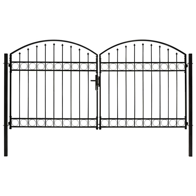 Poarta de gard dubla cu arcada, negru, 300 x 150 cm, otel Poarta de gard dubla cu arcada, negru, 300 x 150 cm, otel