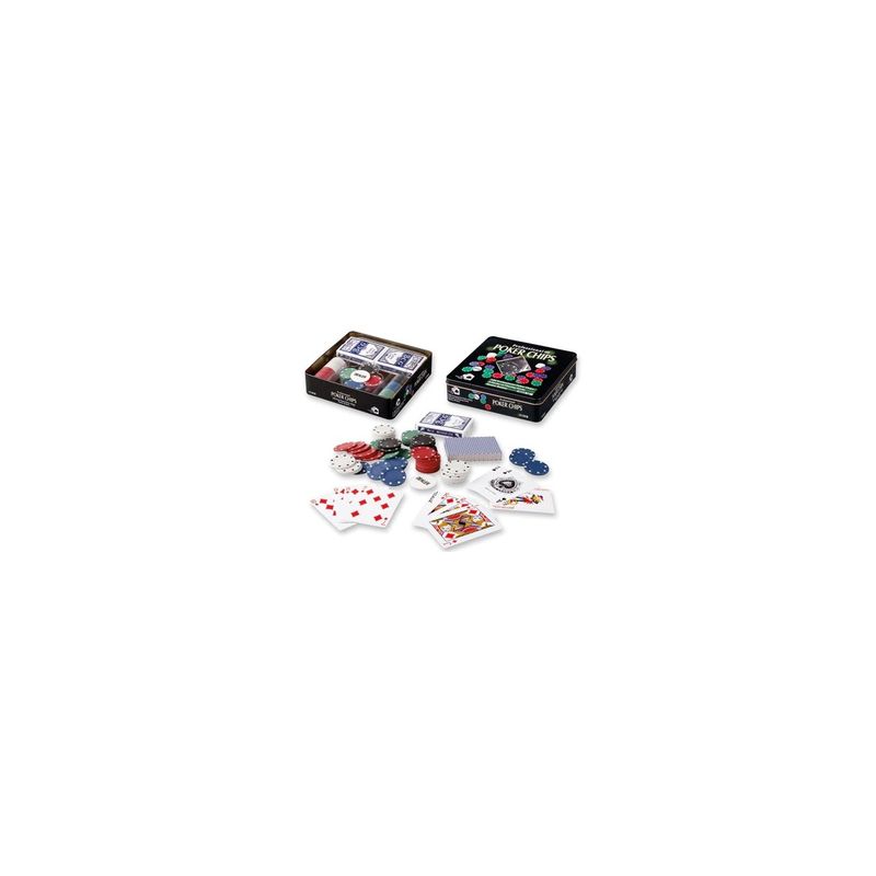 Acest set poker cu 100 chipsuri, buton dealer și 2 pachete de cărți, în cutie metalică, oferă distracție garantată și competiții pline de adrenalină.