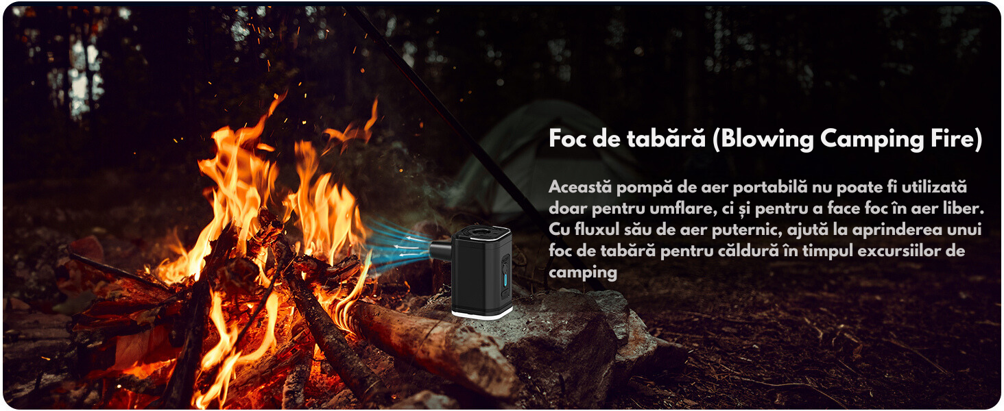- Functie de aprindere a focului de tabara: Cu fluxul sau puternic de aer, aceasta pompa poate fi utilizata si pentru a ajuta la aprinderea focului de tabara, oferind caldura si confort in timpul excursiilor tale.