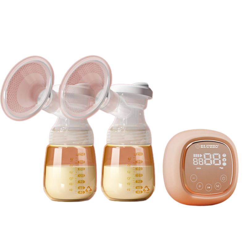 Pompa de San Electrica Bilaterala ELUZZO®, Afisaj Digital, Stimulare prin Masaj si Extragere, 3 Moduri de Masaj, 9 Trepte de Intensitate, Incarcare Usb, Zgomot Redus, Design Antireflux, Capacitate Baterie 2000 mAh, 2 Biberoane 180 ml, Roz