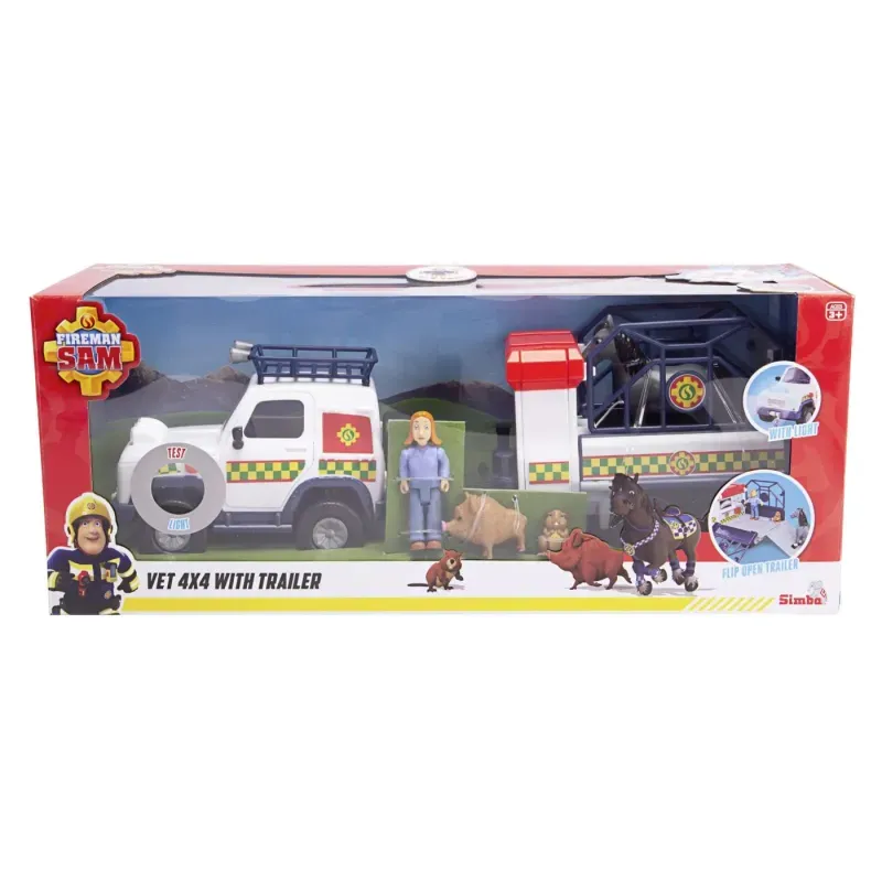 Pompierul Sam Vehicul Salvare Animale Cu Figurine Si Remorca Pompierul Sam Vehicul Salvare Animale Cu Figurine Si Remorca