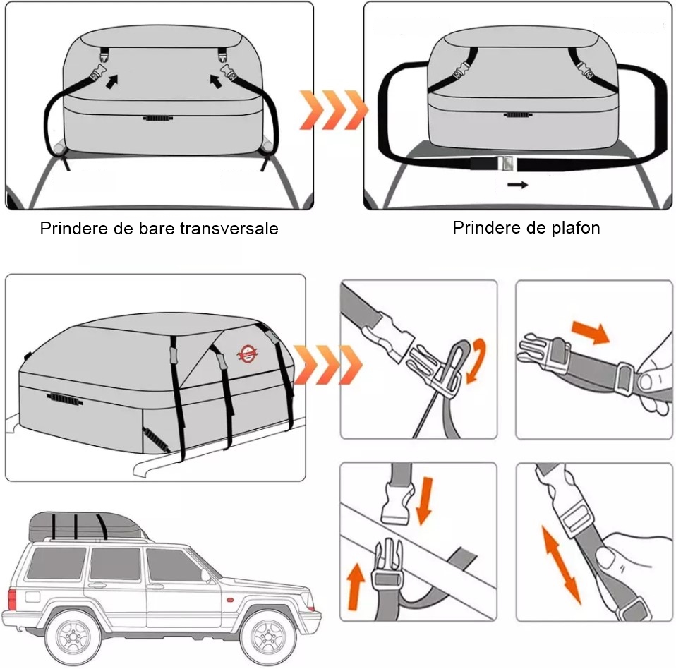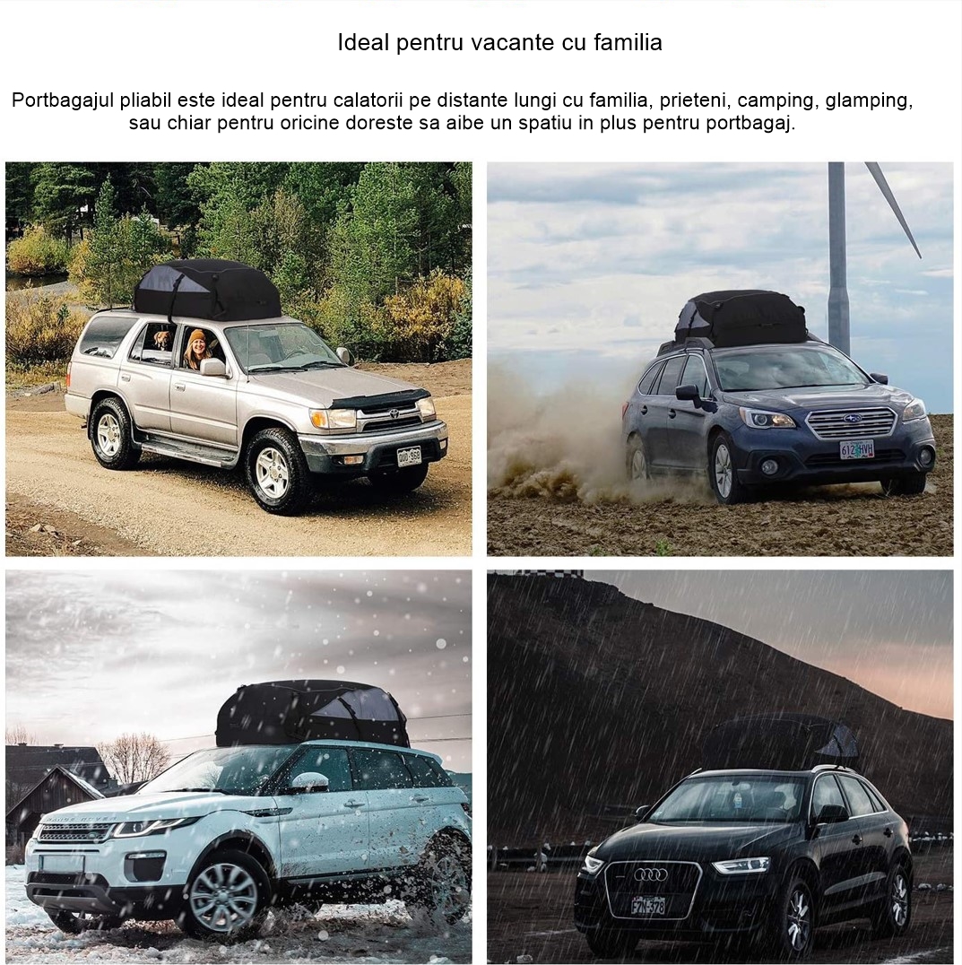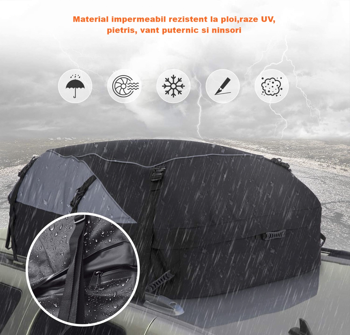 Portbagaj auto plafon, textil, impermeabil pentru drumetii, portabil cu prindere ajustabila universala, Koopsio, 400 L Portbagaj auto plafon, textil, impermeabil pentru drumetii, portabil cu prindere ajustabila universala, Koopsio, 400 L