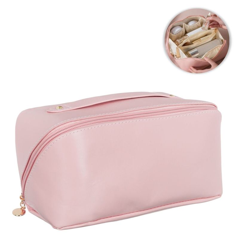 Descopera eleganta si functionalitatea perfecta cu Portfardul Roz cu Maner si Doua Compartimente. Creat special pentru a-ti organiza si proteja produsele de ingrijire personala, acest portfard tip valiza este esential in rutina ta zilnica.