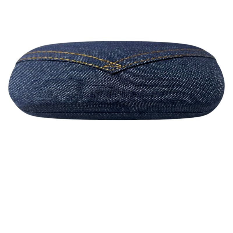 Ingrijire personala si CosmeticeSanatate si wellnessOptica medicalaAccesorii pentru ochelari si lentile de contactPortochelari soare sau vedere, din denim jeans, 16x6x3 cm, captuseala piele sintetica bej, elegant, portabil, durabil