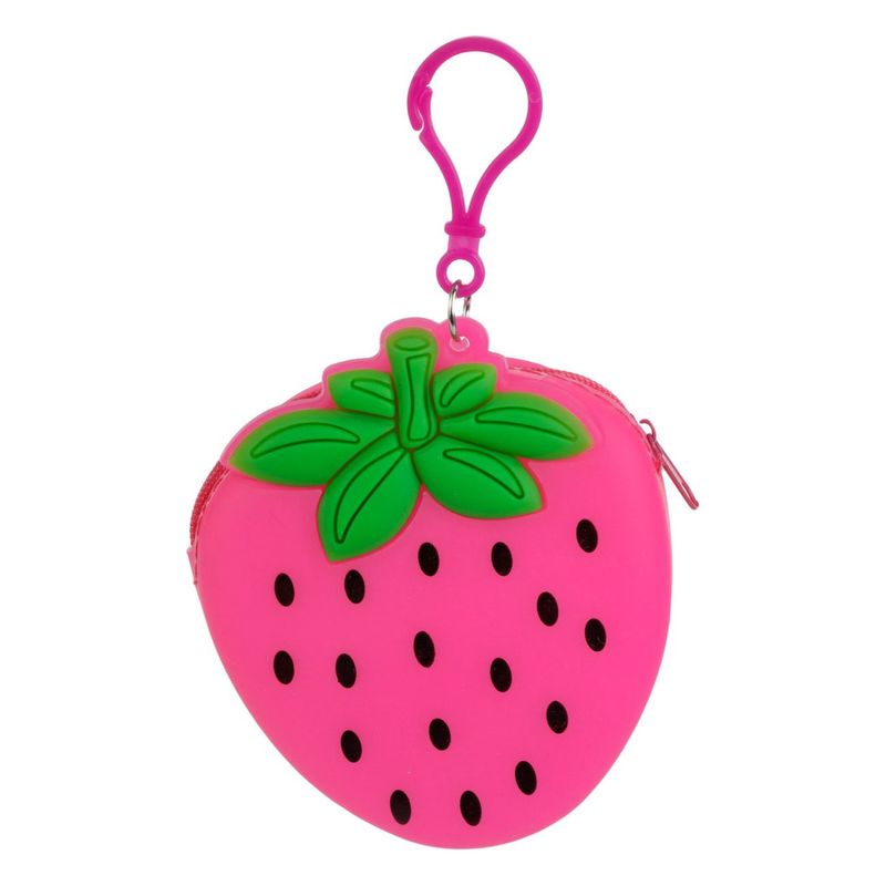 Portofel silicon, model capsuna, roz fluo, 9 x 2.5 x 10 cm, breloc inclus Portofel silicon, model capsuna, roz fluo, 9 x 2.5 x 10 cm, breloc inclus