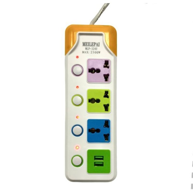 Prelungitor cu 3 prize si 2 usb, 3m , culoare: multicolor Prelungitor cu 3 prize si 2 usb, 3m , culoare: multicolor