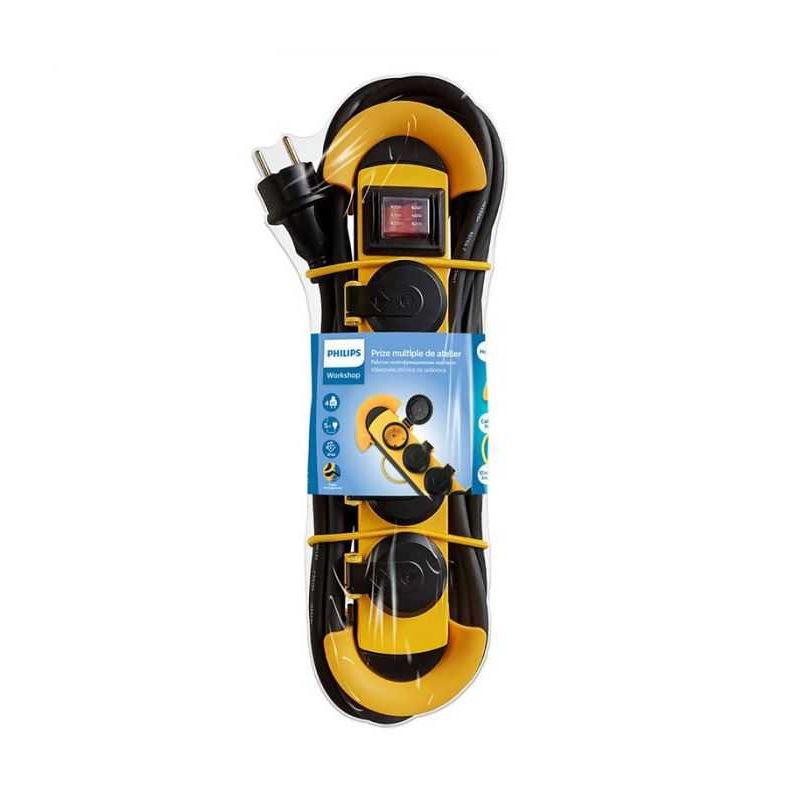 Prelungitor cu protectie 4 prize 5m galben-negru PHILIPS SPN5140YC Prelungitor cu protectie 4 prize 5m galben-negru PHILIPS SPN5140YC