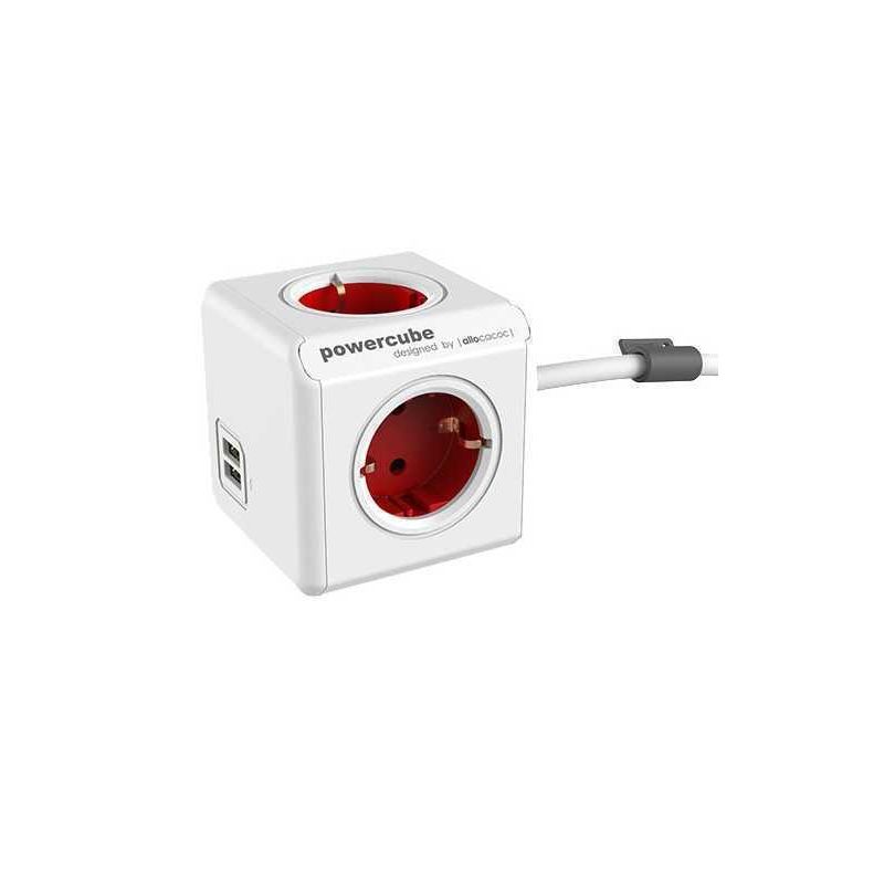 Prelungitor in forma de cub 4 prize 2x USB lungime cablu 1.5m rosu Allocacoc Prelungitor in forma de cub 4 prize 2x USB lungime cablu 1.5m rosu Allocacoc
