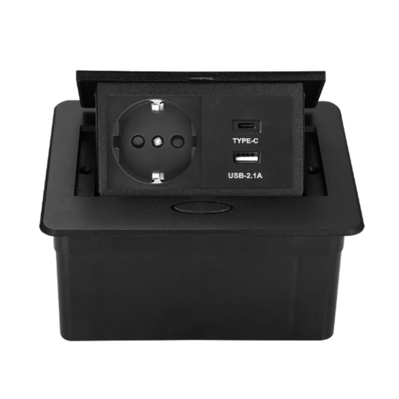 Aceasta priza incorporabila este perfecta pentru spatiile de lucru moderne sau rezidentiale, oferind acces rapid la o priza conventionala si porturi USB pentru incarcarea eficienta a dispozitivelor.