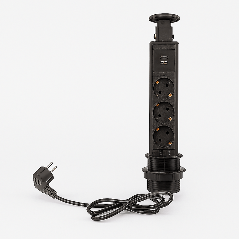 Adauga functionalitate si un plus de eleganta spatiului tau cu priza incorporabila retractabila Adsinio, solutia ideala pentru birouri, bucatarii, spatii de lucru sau zone comerciale unde organizarea si estetica conteaza. Compacta, moderna si usor de utilizat, aceasta priza se integreaza perfect in blaturi, mese sau dulapuri, economisind spatiu fara a compromite accesul la alimentare.