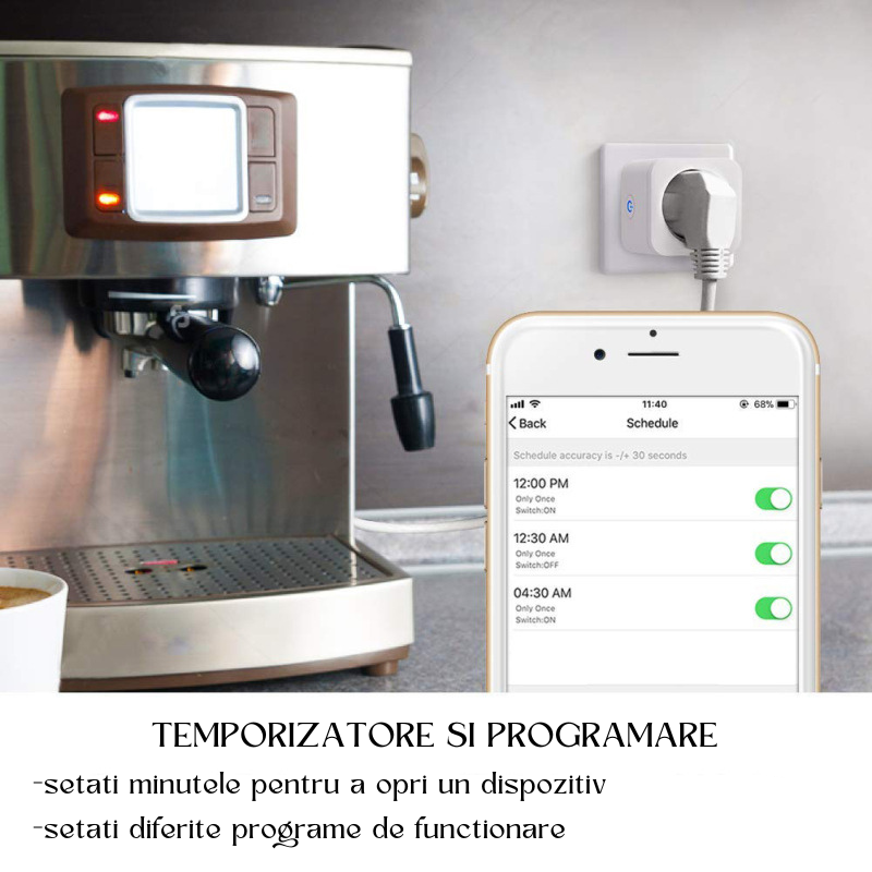 Funcția de temporizare iți permite să programezi activarea sau dezactivarea dispozitivelor conform rutinei tale.