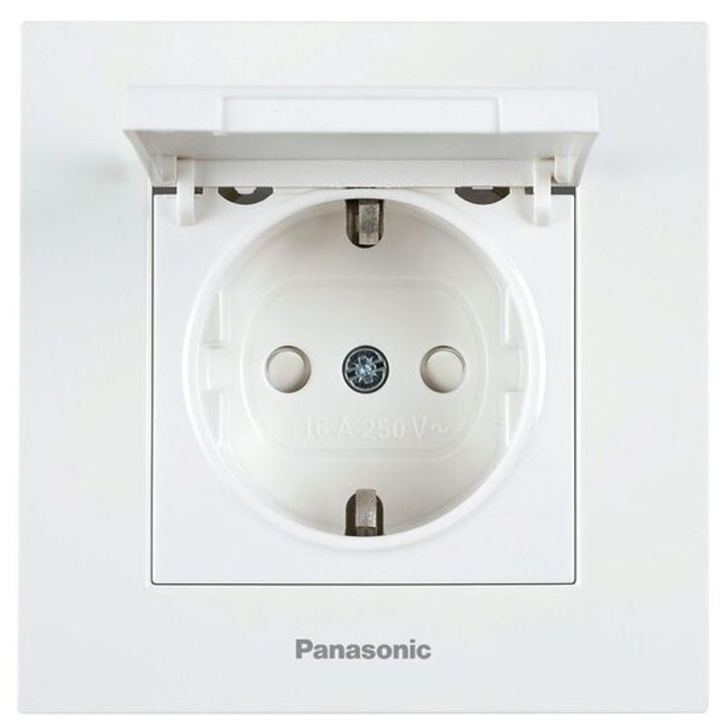 Priza schuko, 2P si E simpla cu obturator protectie copil si capac 16A 250V alb Panasonic PKPS.CAP Priza schuko, 2P si E simpla cu obturator protectie copil si capac 16A 250V alb Panasonic PKPS.CAP