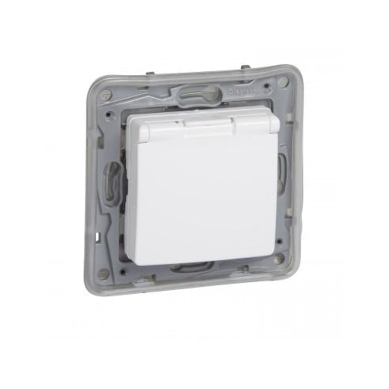 Priza simpla cu capac, 16A, IP44, alba, Legrand Niloe Priza simpla cu capac, 16A, IP44, alba, Legrand Niloe