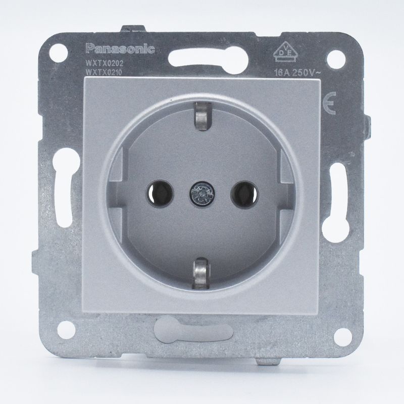 Priza simpla cu impamantare, 16A, IP20, Argintiu, Panasonic Arkedia Slim \ Karre Plus Priza simpla cu impamantare, 16A, IP20, Argintiu, Panasonic Arkedia Slim \ Karre Plus