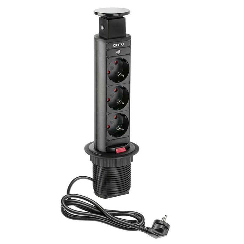 O priza multipla cu prelungitor este un plus util pentru interiorul casei tale si o alta sursa de alimentare pentru aparatele electrice care nu ocupa un loc separat, asa cum se intampla in cazul unui prelungitor traditional de uz casnic. Cand nu este folosita, priza turn incastrabila in blat, 3 prize schuko este complet ascuns in blat, iar cand trebuie sa conectezi un aparat electric, poti deschide cu usurinta capacul pentru a accesa priza.