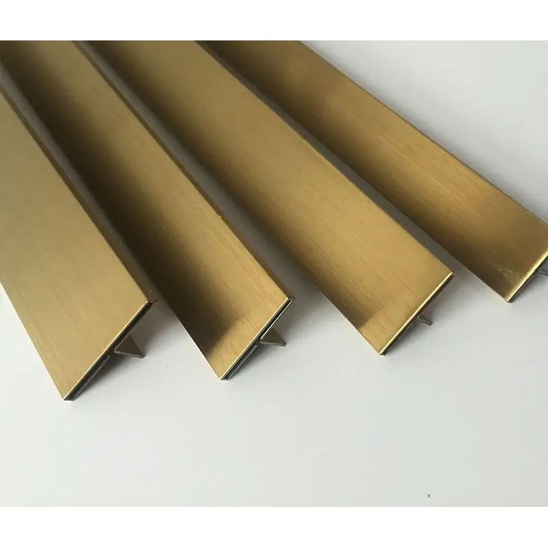 Profil tip prag de trecere T, inox, auriu brush , 3x270 Cm Profil tip prag de trecere T, inox, auriu brush , 3x270 Cm