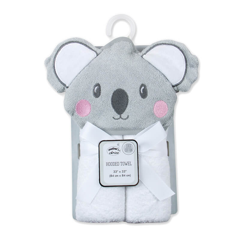 Prosop bebe cu gluga din bumbac - ursulet koala gri Prosop bebe cu gluga din bumbac - ursulet koala gri