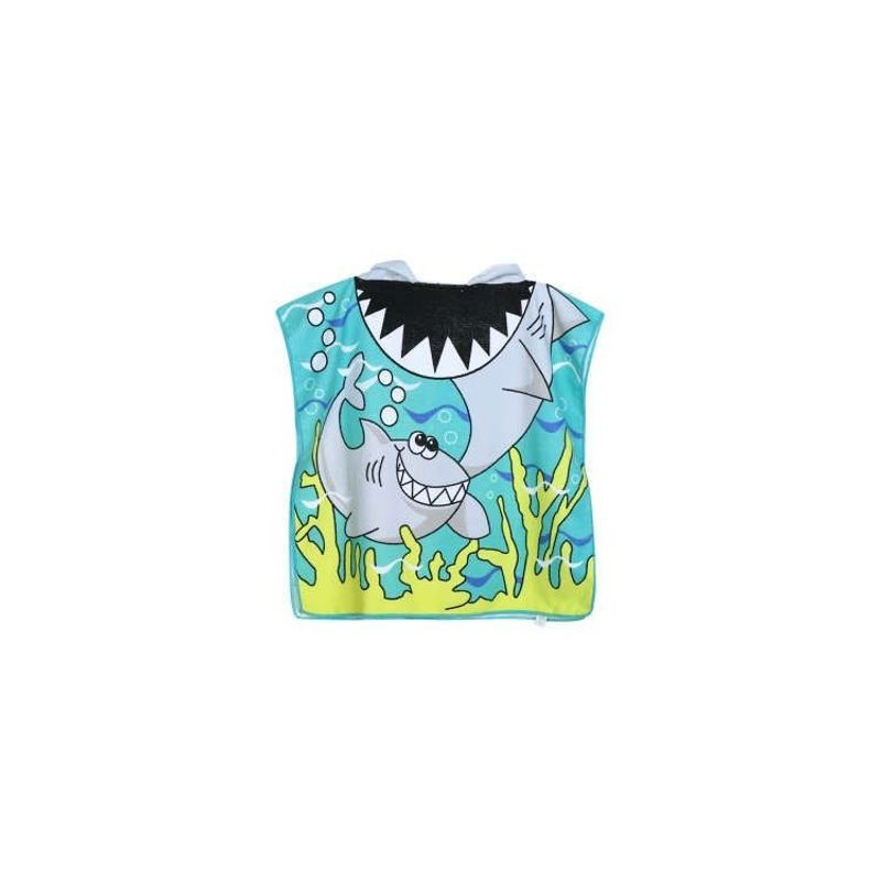 Prosop de baie si plaja, tip pelerina halat cu gluga, model rechin pentru copii, PEL01WZ3 Prosop de baie si plaja, tip pelerina halat cu gluga, model rechin pentru copii, PEL01WZ3