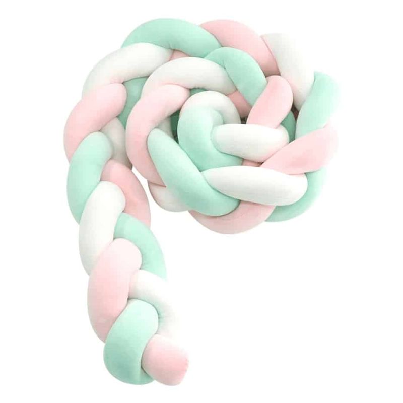 Protectie laterala patut bebe Protectie laterala patut bebe, bumper impletit pufos 210 cm, alb/roz/verde