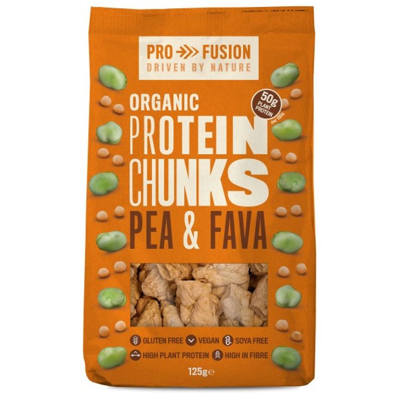Proteina vegetala texturata din mazare si fava bucati mari, bio, 125g Profusion Proteina vegetala texturata din mazare si fava bucati mari, bio, 125g Profusion