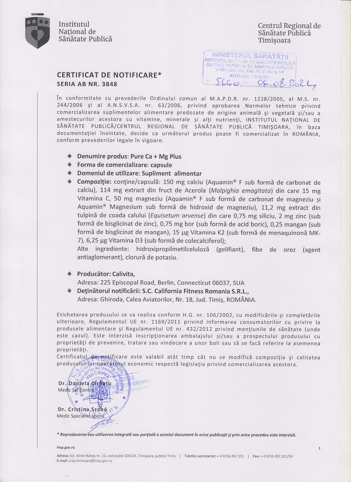 Acest supliment sprijina sanatatea sistemului osos, functionarea normala a muschilor si mentinerea unui sistem nervos sanatos.