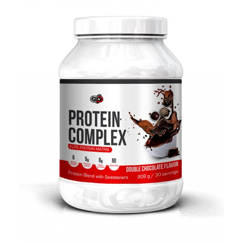 O portie de Protein Complex contine: calorii 112 kcal, proteine 21 g, grasimi 1 g, grasimi saturate 0.5 g, carbohidrati 4.5 g, zaharuri 4 g.