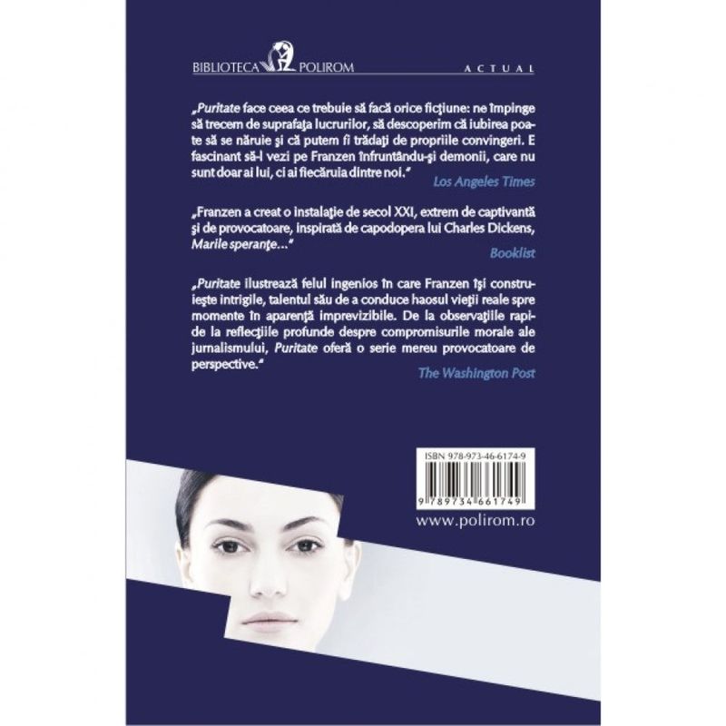 „Puritate face ceea ce trebuie sa faca orice fictiune: ne impinge sa trecem de suprafata lucrurilor, sa descoperim ca iubirea poate sa se naruie si ca putem fi tradati de propriile convingeri. E fascinant sa-l vezi pe Franzen infruntindu-si demonii, care nu sint doar ai lui, ci ai fiecaruia dintre noi.” (Los Angeles Times)