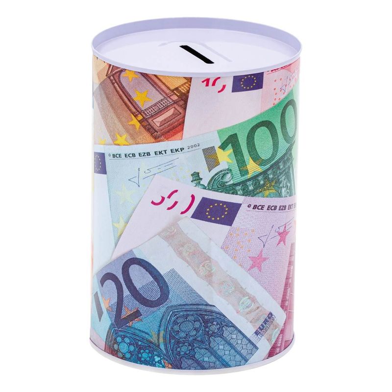 Pusculita metalica, model bancnote euro, multicolor, 10x 15cm, fara capac Pusculita metalica, model bancnote euro, multicolor, 10x 15cm, fara capac