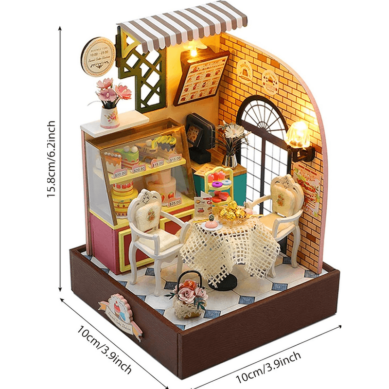Puzzle 3D, Casa de papusi in miniatura DIY, Sweet Cake Station, 15.8x10x10cm Transforma-ti visul intr-o lume in miniatura cu acest puzzle 3D, o macheta in miniatura detaliata. Cu piese atent decupate, acest kit ofera o experienta captivanta de asamblare, combinand precizia unui puzzle cu farmecul unei casa in miniatura. Fiecare element este meticulos realizat, de la mobilierul mininatural pana la decoratiunile delicate, creand un ambient cald si realist. Acesta macheta nu este doar un proiect DIY relexant, ci si o piesa de coletie perfecta pentru pasionatii de miniaturi. Realizate cu precizie si atentie la detalii aceste casute sunt ideale pentru persoanele pasionate de lucru manual deoarece ofera posibilitatea de a construii pas cu pas propria casuta. Iti ofera oportunitatea de a dezvolta si capata abilitati noi, iar tot odata de a te si relaxa. Acest produs nu este prefabricat ci trebuie sa il asamblati singur. Asambleaza-o cu rabdare si bucura-te de un rezultat final -un mic univers de poveste creat chiar de tine! Acest set include: