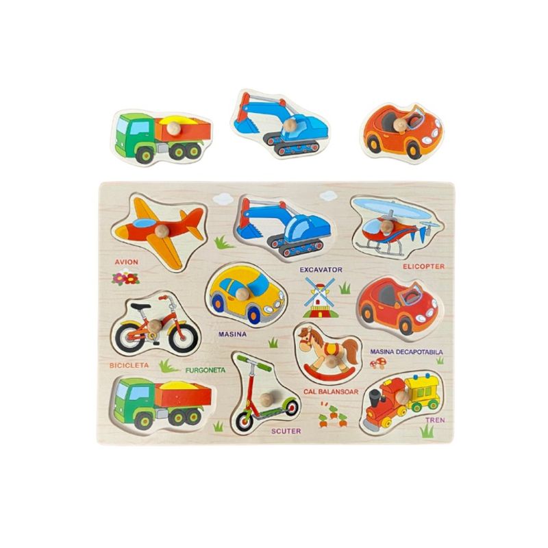 Puzzle incastru din lemn, Lb. Romana - Mijloace de transport, 7Toys Puzzle incastru din lemn, Lb. Romana - Mijloace de transport, 7Toys