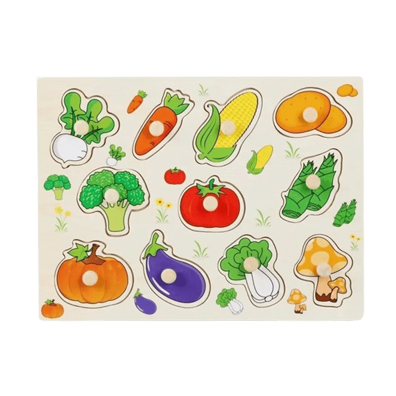 Puzzle incastru educativ pentru copii, lemn, piese cu maner, legume, 3 ani+, Edujucarii Puzzle incastru educativ pentru copii, lemn, piese cu maner, legume, 3 ani+, Edujucarii