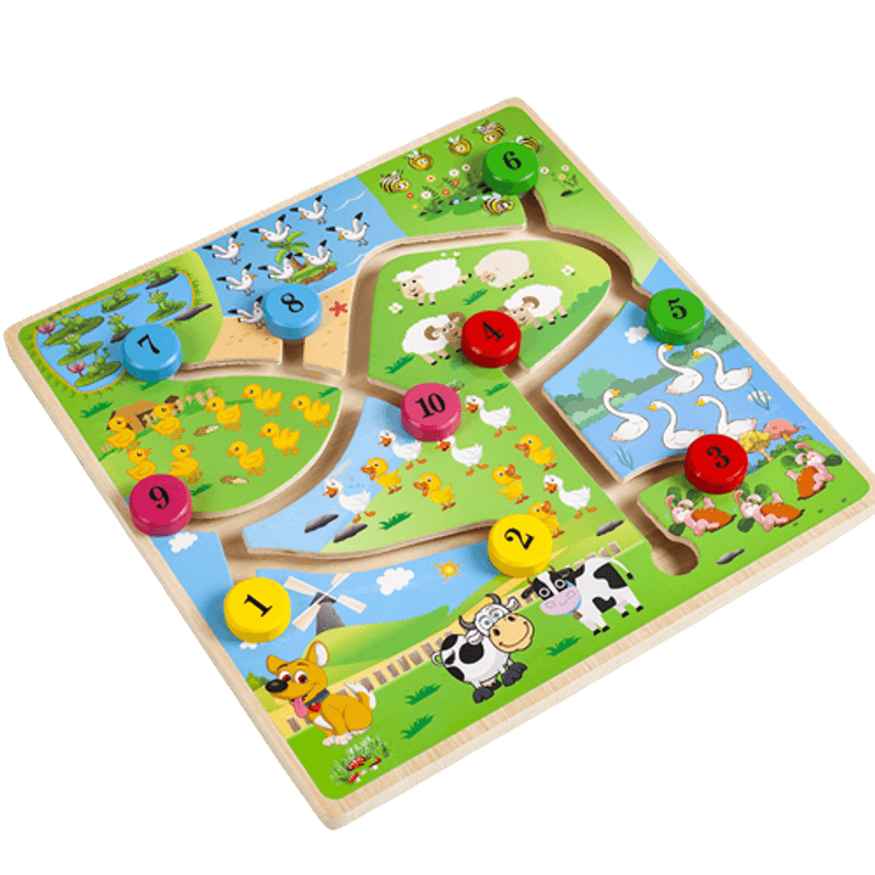 Acest Puzzle din Lemn Labirint 3D este o jucarie educativa si distractiva care aduce provocarea labirinturilor tridimensionale direct in mainile copiilor dvs. Realizat din lemn de inalta calitate, acest puzzle ofera o modalitate captivanta de a dezvolta abilitatile logice si motrice fine ale copiilor. Caracteristici Experienta Tridimensionala: Acest puzzle este tridimensional, oferind o experienta tactila si vizuala captivanta; Lemn de Inalta Calitate: Realizat din lemn durabil si finisat cu atentie, acest puzzle rezista utilizarii indelungate; Dezvoltarea Abilitatilor: Copiii vor exersa coordonarea ochi-mana, gandirea logica si perseverenta in timp ce navigheaza prin labirint; Joc Educativ: Labirinturile 3D incurajeaza gandirea strategica si rezolvarea de probleme, promovand dezvoltarea intelectuala a copiilor; Design Atractiv: Cu designul sau atragator, acest puzzle devine un punct focal in colectia de jucarii a copiilor; Piesele se gliseaza pe canalele unui labirint. Piesele sunt mobile, bine incastrate in placa din lemn si nu pot fi scoase sau pierdute. Este un puzzle compact, ale carui piese nu pot fi amestecate sau ratacite printre alte jucarii ale copilului. Cum Se Joaca: Copilul trebuie sa mute piesele pe canalele labirintului si sa le potriveasca corect langa imaginea corespunzatoare. Pe placa sunt realizate desene, iar fiecare piesa trebuie sa fie aranjata corect langa imaginea sa. Acest joc dezvolta rabdarea, concentrarea si abilitatile de rezolvare a problemelor. Ofera-i copilului oportunitatea de a-si dezvolta abilitatile esentiale in timp ce se distreaza. „Lasa copilul sa fie actorul, copilul va conduce.» -Maria Montessori Specificatie: Material : lemn Dimensiuni : 29.5 cm x 29.5 cm x 4,5 cm Varsta recomandata : 3 ani+ Atentie! Nu lasati ambalajele jucariilor/produselor la indemana copiilor. Indepartati orice ambalaj al jucariei/produsului inainte de a da jucaria/produsul copilului. Va rugam sa supravegheati copilul in timp ce se joaca/foloseste acest produs. Pastrati instructiunile si etichetele pentru referinte viitoare. Pastrati jucaria/produsul departe de foc, feriti jucaria/produsul de temperaturi ridicate si umiditate.