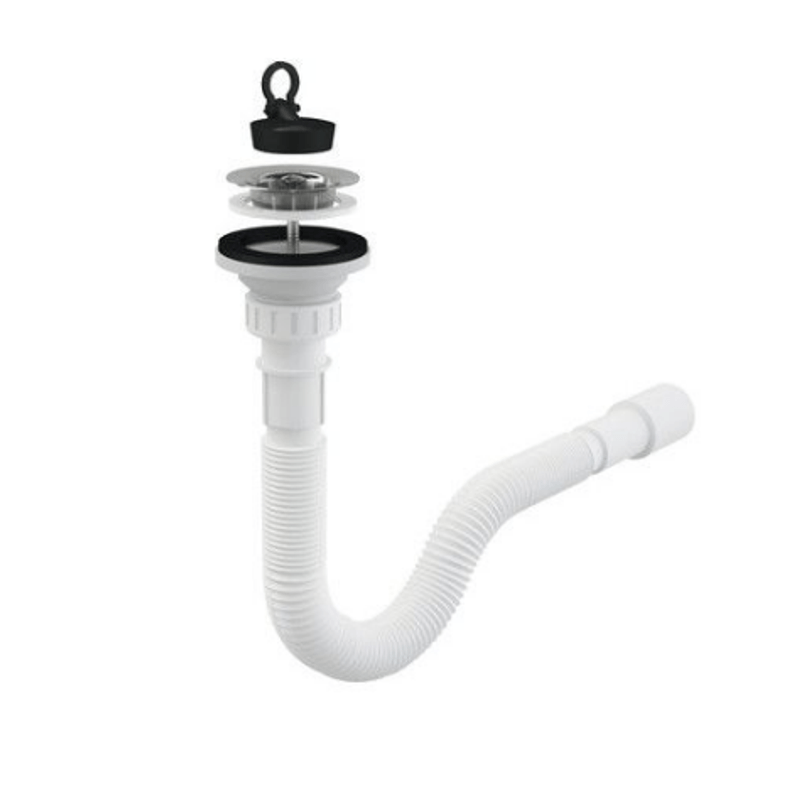Casa si GradinaSanitareLavoar baie si accesoriiBaterii sanitareRacord flexibil 1,1/4″ x 32/40 Ani Plast, piulita din plastic + ventil chiuveta cu sita din otel inoxidabil ,A33