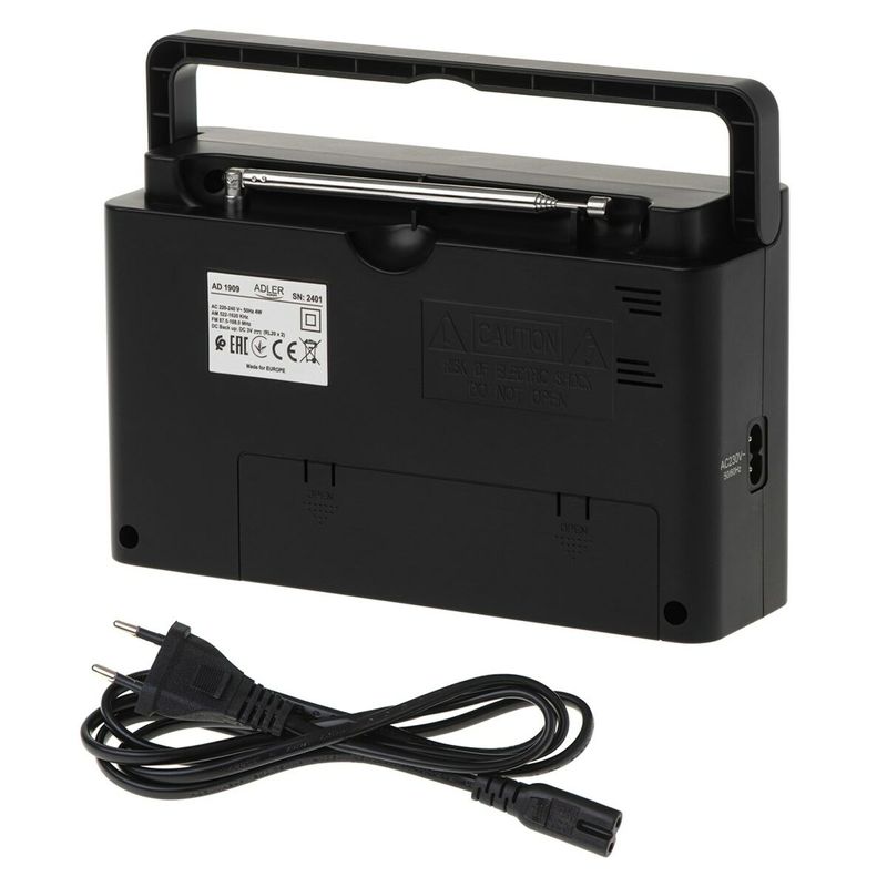 Adler AD 1909 este un radio clasic si functional, ideal pentru cei care apreciaza designul traditional si sunetul cald al radioului analogic. Cu functiile sale versatile si alimentarea flexibila, acesta este un partener ideal pentru momentele de relaxare si divertisment.