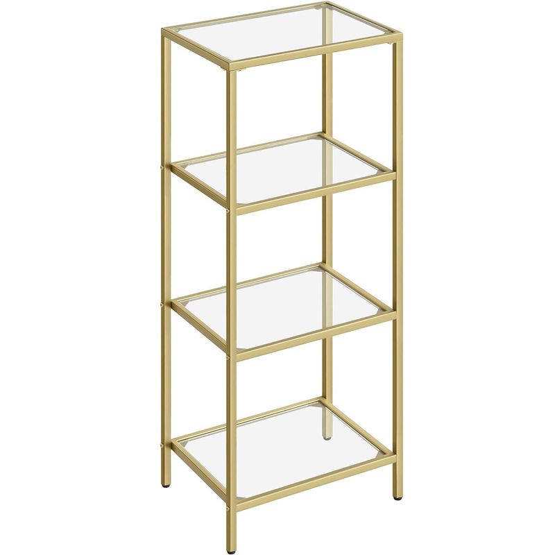 Specificatii: Culoare: Auriu Material: Otel, sticla Dimensiunea produsului: 30 x 40 x 95 cm (D x L x H) Greutatea produsului: 6,3 kg Sarcina statica a fiecarui raft: 10 kg Capacitate de incarcare statica: 40 kg Despre acest articol Cu rafturi din sticla transparenta si o rama neagra, acest raft cu 4 nivele se mandreste cu un model impresionant. Acest mic raft va permite sa va expuneti florile, cartile si obiectele de colectie, ridicand in acelasi timp aspectul spatiului dvs.Cu dimensiune de 30 x 40 cm, acest raft deschis pe 4 niveluri cu o inaltime de 95 cm va permite sa utilizati la maxim spatiul vertical pentru depozitare.Nu trebuie sa va faceti griji cu privire la asamblarea acestui raft. Instructiunile clare si piesele numerotate va vor ajuta sa il asamblati cu usurinta.Un raft subtire pentru carti in birou? Un raft de expunere pentru bibelouri in camera de zi? Un raft deschis pentru fotografii in dormitor? Acest raft ingust cu 4 nivele va acopera toate nevoile.Aceasta biblioteca subtire, realizata din sticla calita de 4 mm grosime si un cadru din otel, este foarte solid. Picioarele reglabile sporesc stabilitatea, iar kitul anti-inclinare sporeste siguranta.