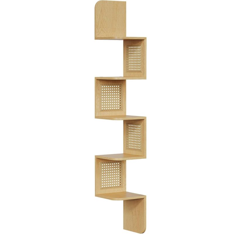 Raft de colt plutitor pe 5 niveluri, stil boho, 20x20x126 cm, bej Raft de colt plutitor pe 5 niveluri, stil boho, 20x20x126 cm, bej