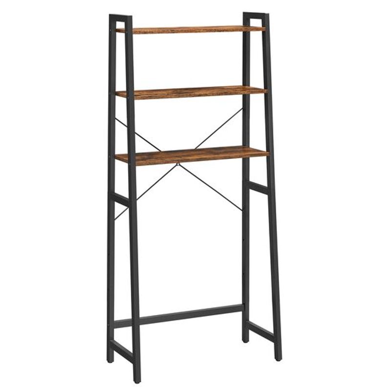 Raft pentru baie, deasupra toaletei, Artool, pal si otel, 3 polite, maro rustic si negru, 64x30x156 cm