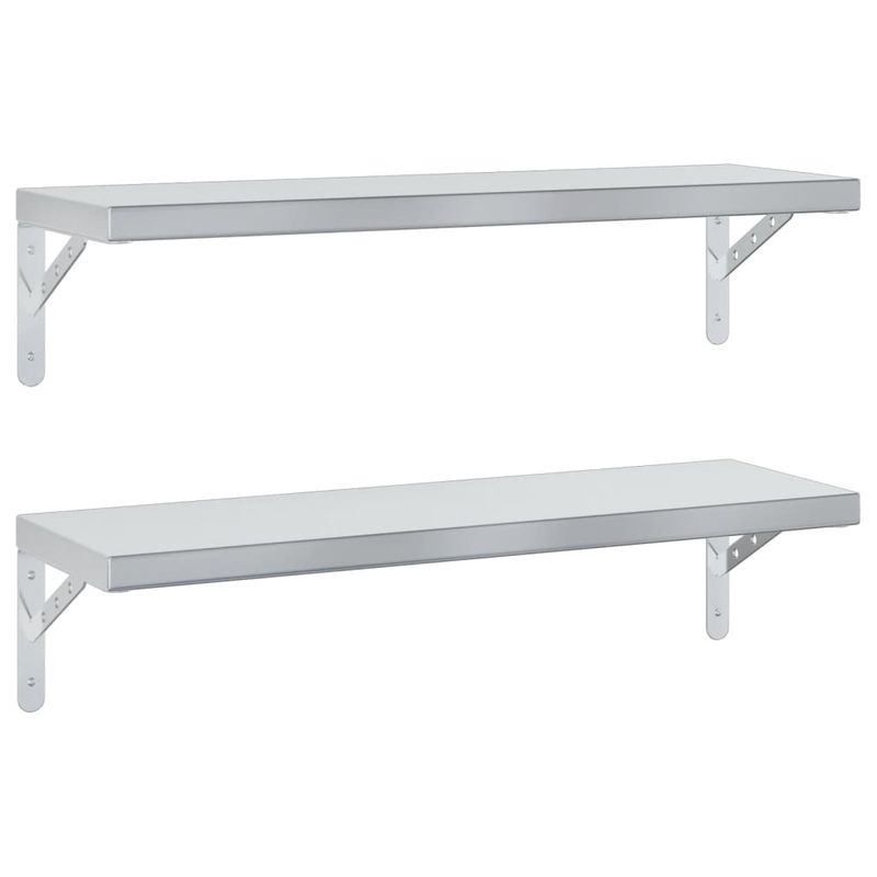 Rafturi de perete, 2 buc. 75x23,5 cm argintiu otel inoxidabil Rafturi de perete, 2 buc. 75x23,5 cm argintiu otel inoxidabil