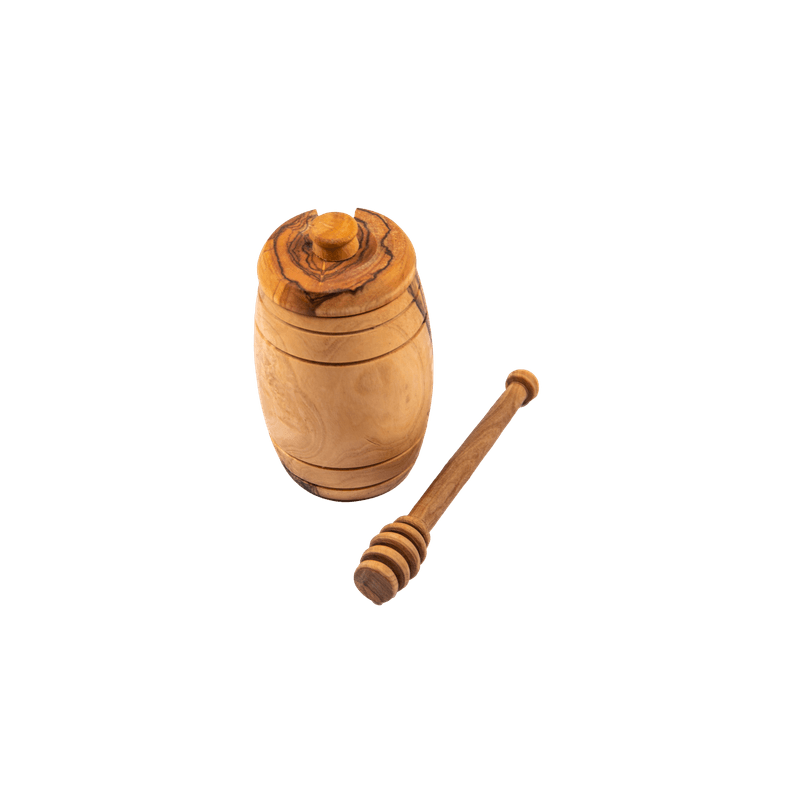 Recipient pentru miere din lemn de maslin cu lingurita 11x6 cm Recipient pentru miere din lemn de maslin cu lingurita 11x6 cm