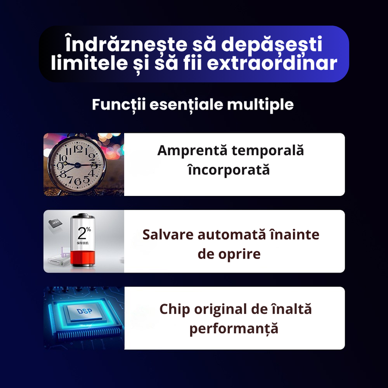 3️. Chip original de inalta performanta – Procesorul avansat asigura o calitate audio superioara, reducand zgomotul de fond si optimizand claritatea fiecarei inregistrari.