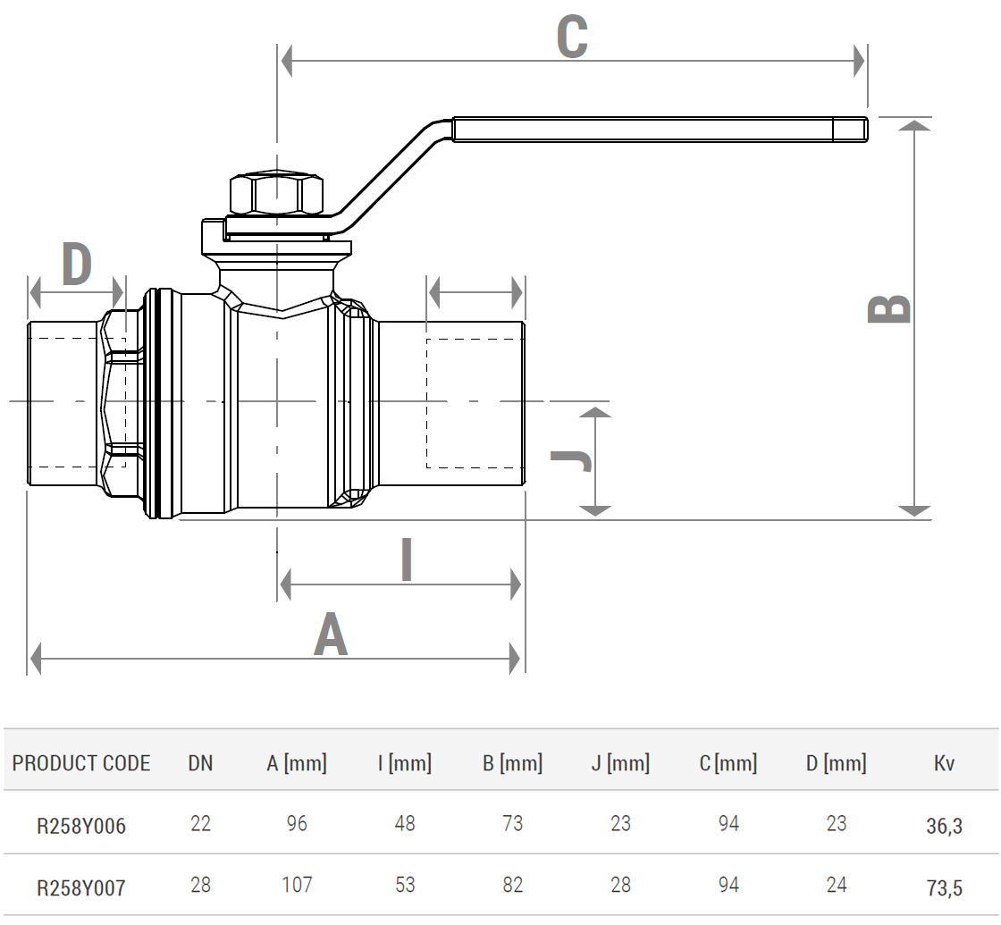 Modelul are racorduri pentru lipire directa pe teava de cupru (sweat connection), asigurand montaj rapid si sigur. Constructia cu port standard permite controlul precis al debitului, iar tija prevazuta cu garnituri duble O-Ring garanteaza etanseitate de lunga durata.