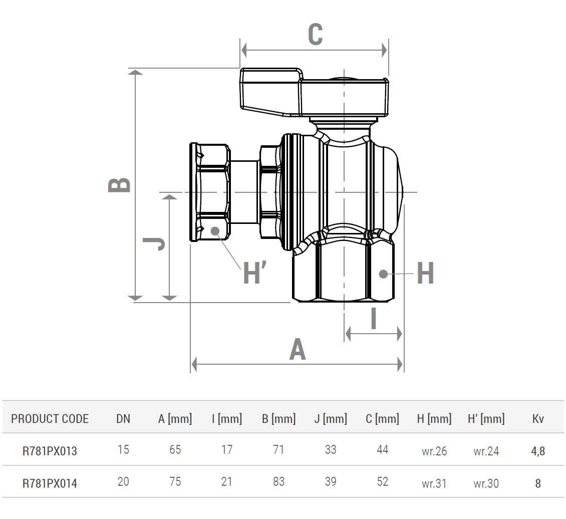 Corpul robinetului este realizat din alama CW617N conform UNI EN 12165, cu finisaj nichelat pentru protectie impotriva coroziunii. Tija este prevazuta cu dublu O-ring pentru prevenirea scurgerilor, iar piulita are strat anticoroziv, sigiliu si holograma de garantie.