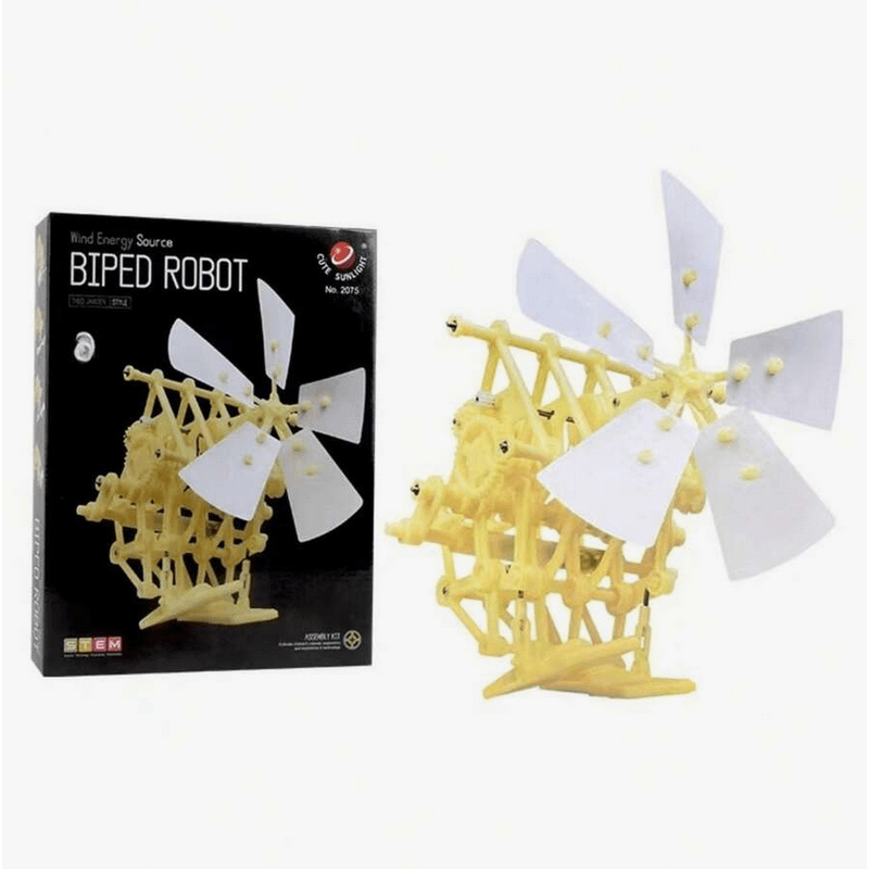 Kitul de asamblare cu energie eoliana, Robot biped Faceti ca robotul eolian sa mearga. Robotul biped este proiectat ca sa mearga in directia fluxului de aer. Robotul are nevoie mai intai de putere suplimentara pentru a roti turbina eoliana si a ridica fiecare picior, asa ca trebuie ajustat dupa cum este necesar pentru a incerca diferite moduri de a crea cel mai bun flux de aer pentru ca robotul sa mearga. Puteti folosi un ventilator circular de hartie, un ventilator electric, uscator aer rece, o suflare puternica datorita careia turbina care antreneaza ventilatorul va incepe sa se miste, iar structura ar trebui sa inceapa sa se miste. Kitul va permite sa folositi gandirea creativa, astfel incat, in timp ce invatati prin joc, puteti afla despre principiile crearii de putere, puterea vantului si efectele acestuia. In timpul procesului de asamblare, copii pot experimenta bucuria si implinirea prin depasire, serie de provocari, care ajuta la stimularea gandirii creative a copiilor si dezvoltarea mintii acestora. Este o forma fireasca de a cunoaste lumea, care este cea mai placuta si mai accesibila pentru copii, iar creativitatea trezita in ei va da roade in viitor. Fa-i pe cei mici sa iubeasca stiinta, ajutandu-i sa-si dezvolte abilitatile si cunostintele pentru viitor! Kitul include tot ce este necesar pentru realizarea experimentului mai putin un cleste pentru taiat . Material : plastic + metal Dimensiune ambalaj aproximativ: 19 x 5 x 25 cm Varsta recomandata : 8 ani + Nota: Datorita masurarii manuale, va rugam sa permiteti diferente de dimensiuni de 1-2 mm Datorita diferentei de lumina si ecran, culoarea elementului poate fi usor diferita de imagini. Ambalajul trebuie indepartat, recuperat si aruncat de catre un adult inainte de a se da spre utilizare copilului. Nu lasati ambalajele produselor la indemana copiilor. Se recomanda utilizarea produsului sub supravegherea unui adult. Produsul poate contine piese mici care se pot inghiti sau inhala de cei mici, existand pericolul de sufocare sau nu este potrivita copiilor mai mici de 8 ani. Pastrati instructiunile si etichetele pentru referinte viitoare. Pastrati produsul departe de foc, si nu il lasati in preajma temperaturilor ridicate si a umiditatii.