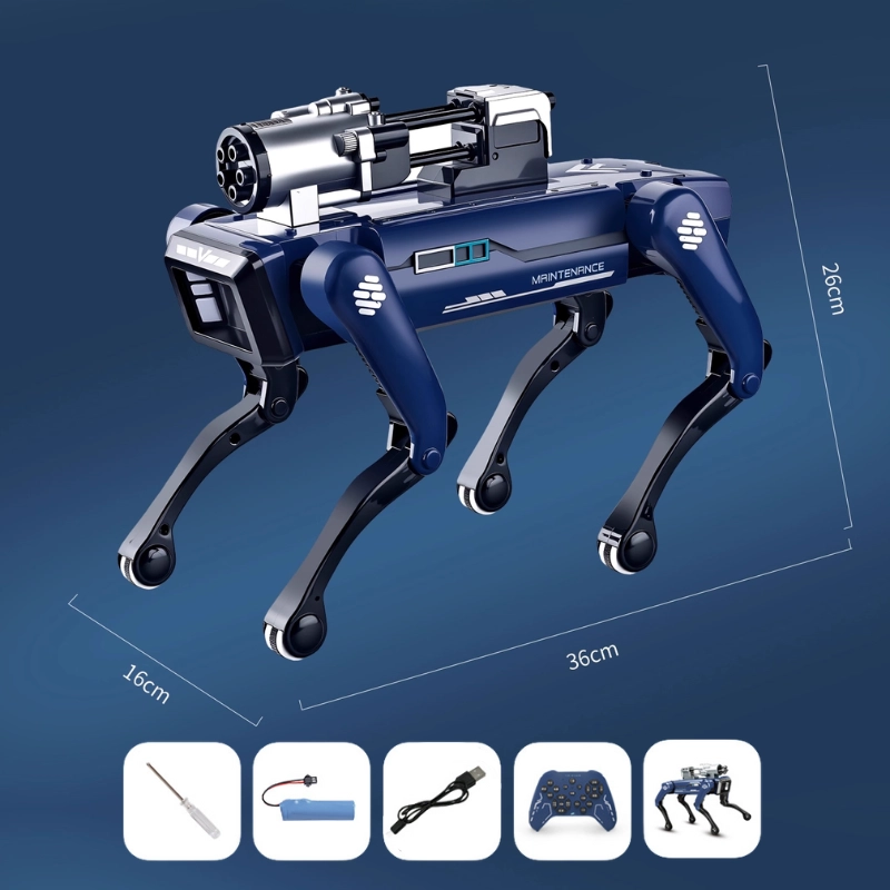• PACHETUL INCLUDE: 1 x caine robot inteligent iUni 8020, 1 x telecomanda, 10 x sageti cu varf din cauciuc, 1 x cablu de alimentare USB-C, 1 x mini surubelnita, 1 x manual de utilizare