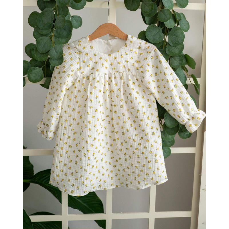 Rochie din muselina cu imprimeu floricele galbene 80 cm 6-12 luni Rochie din muselina cu imprimeu floricele galbene 80 cm 6-12 luni